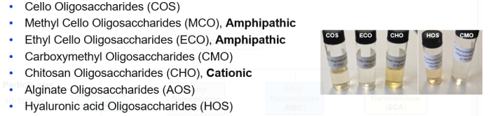 - Particle size: 10-100 nm for nanocellulose; <5 nm (<DP 10) for oligosaccharides.